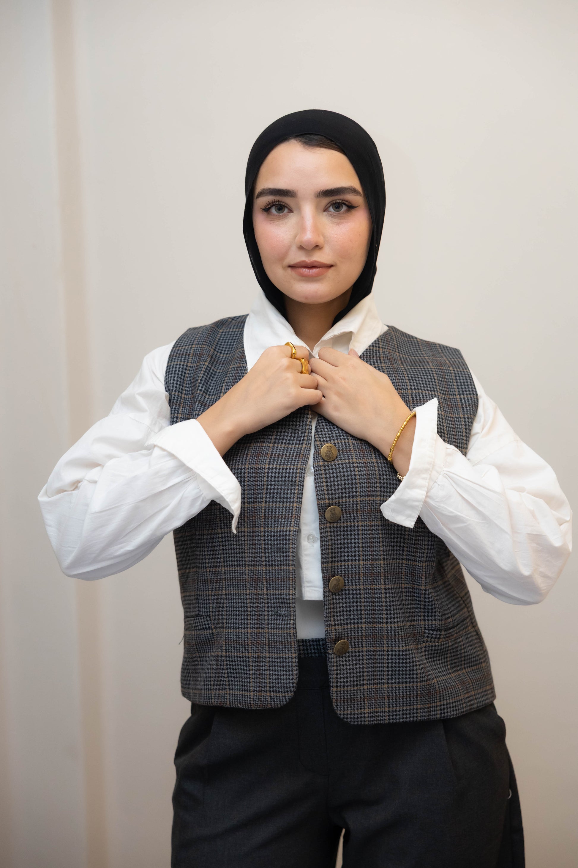 Short gray plaid vest